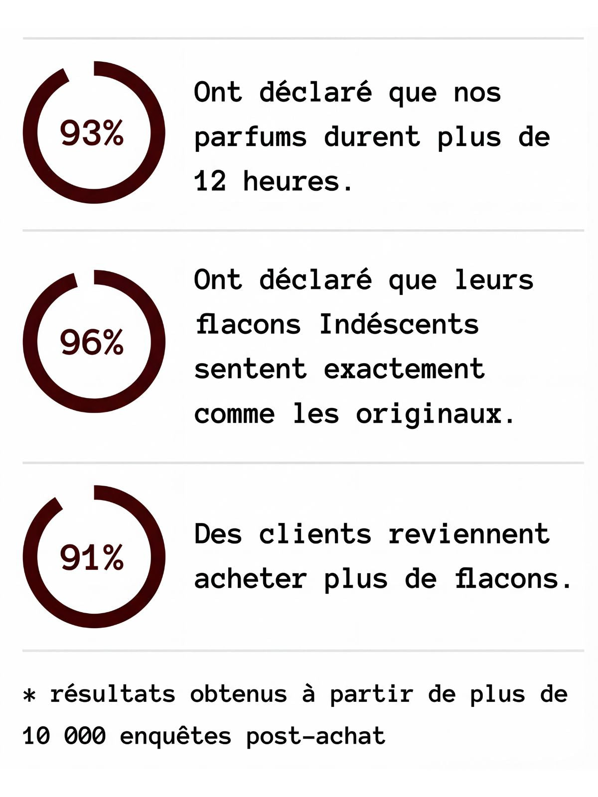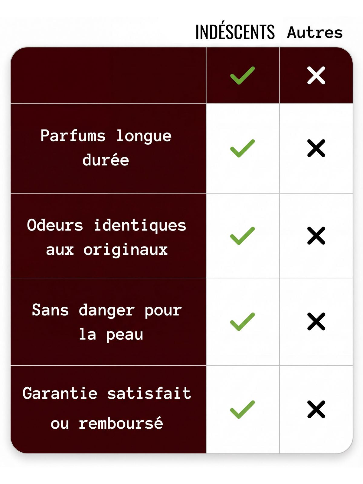 Pour toute question concernant votre commande, veuillez nous écrire à contact@indescents.com. Nous sommes là pour vous aider !